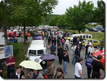 Ausgeschrieben als großes Oldtimertreffen folgten trotz schlechter Wettervorhersagen an die 250 Fahrzeuge und ca. 1000 Besucher. Am Tag zuvor war beim besten Wetter das VW & Audi Treffen. Da es mittlerweile eine alt eingesessene Veranstaltung ist und das Oldtimertreffen in Heiligenstadt zu den bedeutsamsten Oldtimertreffen in ganz Franken gehört lockte es auch an diesem verregneten Sonntag zahlreiche Teilnehmer u.a. auch Teilnehmer aus Niederösterreich nach Heiligenstadt. Das Treffen in Heiligenstadt bietet immer eine Zeitreise durch die Entwicklungsgeschichte, denn an diesem Tag kommen nicht nur PKW sondern auch alte Fahrräder, Kinderwägen und sogar alte Mähdrescher zum Oldtimertreffen. Die Besucher hatten glänzende Augen und konnten sich gar nicht satt sehen an all diesen technischen Raritäten. Der Organisator Krämer Horst sagte bei der Begrüßung ?egal ob es regnet oder schneit, die Leute kommen immer in Scharen nach Heiligenstadt zum Oldtimertreffen und bedankte sich auch fürs kommen?. Beweiße hat es genug gegeben. Beide Seitenstreifen von den Besuchern zugeparkt und in ganz Heiligenstadt kaum mehr ein freier Platz. Die Bierbänke unter den Zelten voll. Normalerweise ist Heiligenstadt ein eher ruhiges Touristenörtchen in der Fränkischen Schweiz im Städtedreieck Bamberg, Bayreuth und Nürnberg, jedoch an diesem Tag ist Ausnahmezustand. Genau um 12.00 Uhr viel der Startschuss für die beliebte Ausfahrt der Oldtimer durch die fränkische. Am Nachmittag präsentierte Organisator Krämer Horst verschiedene Fahrzeuge unter anderem auch einen MF Mähdrescher aus den 50iger mit Käfermotor. Es war alles da von der rostigen Ratte bis hin zum polierten Oldtimer. Einige Besucher sagten: Einer schöner wie der andere. Da es die ersten Jahre als VW & Porsche Oldtimertreffen ausgeschrieben war, ist es auch Treffpunkt vieler Käferfahrer und auch ein ganz begehrtes Treffen für die 356 Porschefahrer, denn an diesem Tag kommen Sie alle aus Ihren Löchern. Nach Hause ging trotz des Wetters kaum jemand, denn dafür gab es einfach zu viel zum sehen. Ein umfangreiches Rahmenprogramm verleiht auch der Veranstaltung von Horst Krämer zusätzlich einen einzigartigen Charakter und wird damit zu einem großen Erlebnis für Kinder und Erwachsene. Sei es der Teilemarkt auf dem man sich eindecken kann für die guten alten Stücke, die Fahrzeugpräsentation am Nachmittag, die Ausfahrt durch die Fränkische in der Mittagszeit, Kinderspielecke und und und.. Deswegen auf nach Heiligenstadt, wenn es 2012 Mitte Ende Juli wieder heißt Oldtimertreffen Heiligenstadt.